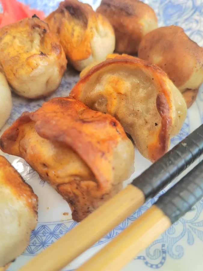 Пельмени ручной лепки "Гёдза с ягненком" - можно варить классическим способом или жарить. Состав: Мука высшего сорта Яйца домашних курочек Растительное масло Фарш ягненка Лук репчатый Чеснок Соль Перец чёрный молотый