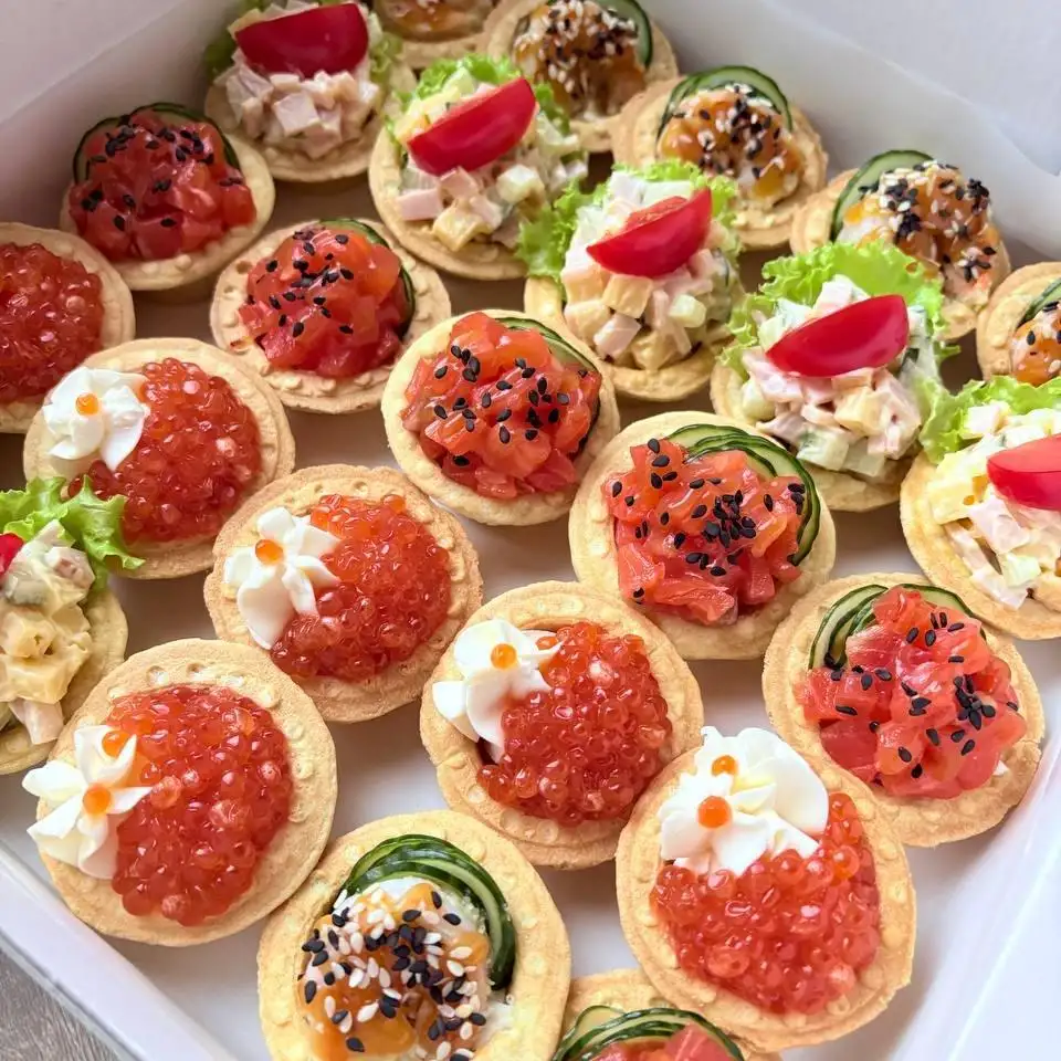 Классный, яркий бокс тарталеток, 4 разных вкусов. Каждый найдет себе то, что любит! Бокс рассчитан на 5−8 человек. *декор и сервировка может отличаться