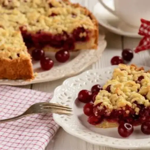 Ароматный пирог с нежным песочным тестом и сочной кисло-сладкой начинкой из вишни.