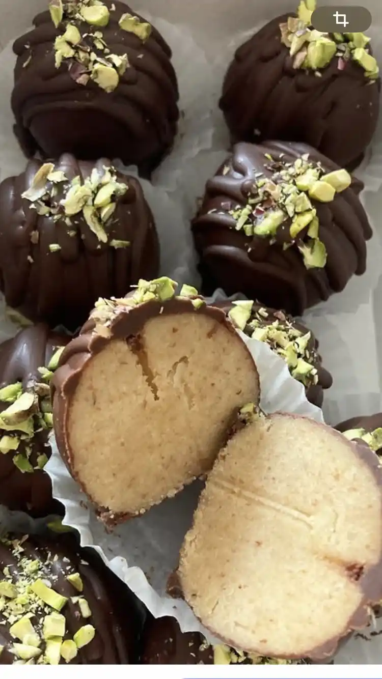 Темное: Бисквит домашний, сливочный крем, миндальная мука, шоколад, фисташки Белое: Шоколадный бисквит, сливочный крем, шоколад, какао, миндальная мука, карамель, клубничный крокант