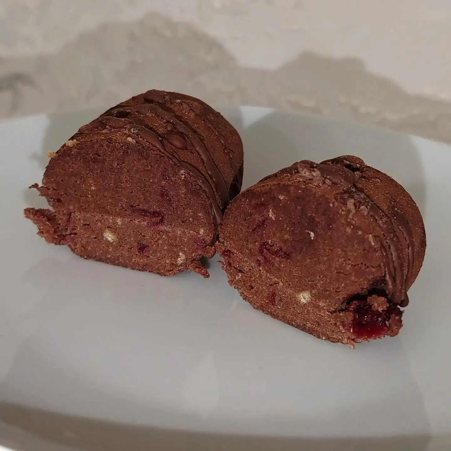 В составе пирожных используется два бисквита: песочный и насыщенный ванильный. «Шоколад-вишня" с карамелизованной вишней, марципаном, ликером амаретто, шоколадным соусом.