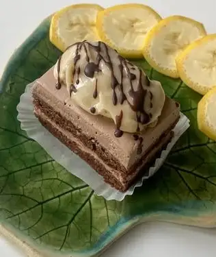 Шоколадные бисквиты, шоколадный крем пломбир с карамелизированным бананом и карамелью. Вес: 100-120 г