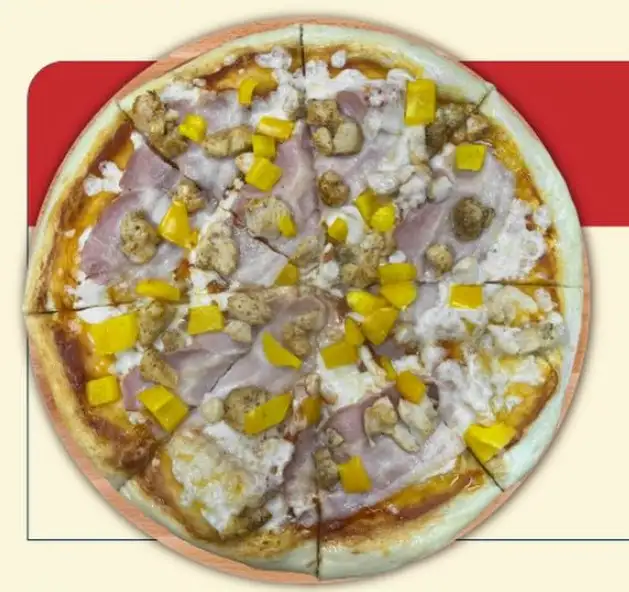 Соус пицца, моцарелла, грудинка, курица, перец сладкий