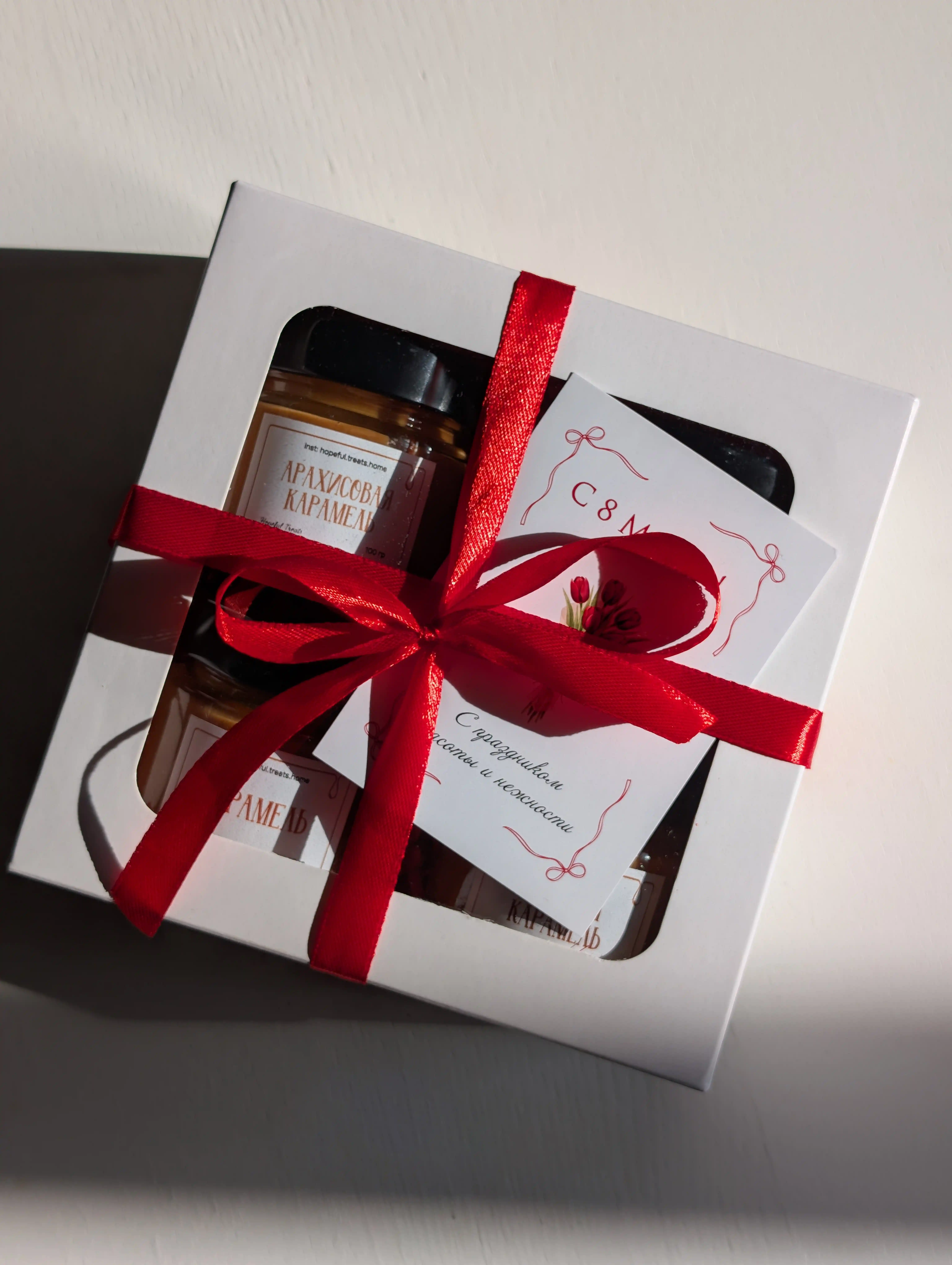 Подарочный бокс "Микс" Состав: 100% натурально - только сахар, сливки, масло и любовь. В наборе: 4 баночки по 100 г с разными вкусами. Идеальный способ найти своего фаворита или сделать стильный подарок. Срок хранения: В холодильнике - до 60 суток. При комнатной температуре - до 14 суток. Цена: 40 BYN