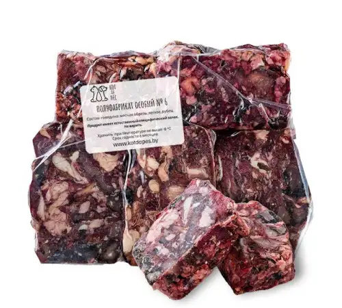 Состав: Крупнокусковой фарш. Говядина: мясная обрезь, легкое, рубец. Порезан на кусочки. Вакуумная упаковка. Подходит для всех пород собак и кошек. Рекомендуется давать с 5ти месячного возраста. Исключительно натуральный продукт (мясо +субпродукты). Рекомендуется давать в сыром виде, можно употреблять в пищу питомцу сразу после разморозки. Можно комбинировать с овощами и фруктами. Хранить при температуре не выше −8 °C. Срок годности 6 месяцев.
