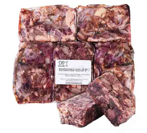 Состав: Крупнокусковой фарш. Говядина: мясная обрезь, легкое, рубец белый; морковь. Порезан на кусочки. Вакуумная упаковка. Подходит для всех пород собак и кошек. Рекомендуется давать с 4 месячного возраста. Исключительно натуральный продукт (мясо, субпродукты и овощи) Рекомендуется давать в сыром виде, можно употреблять в пищу питомцу сразу после разморозки. Хранить при температуре не выше −8 °C. Срок годности 6 месяцев.