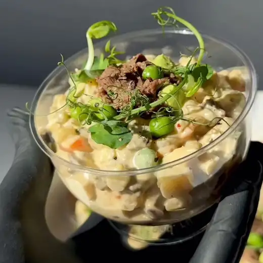 — Цезарь с курицей — Греческий — Оливье с говядиной