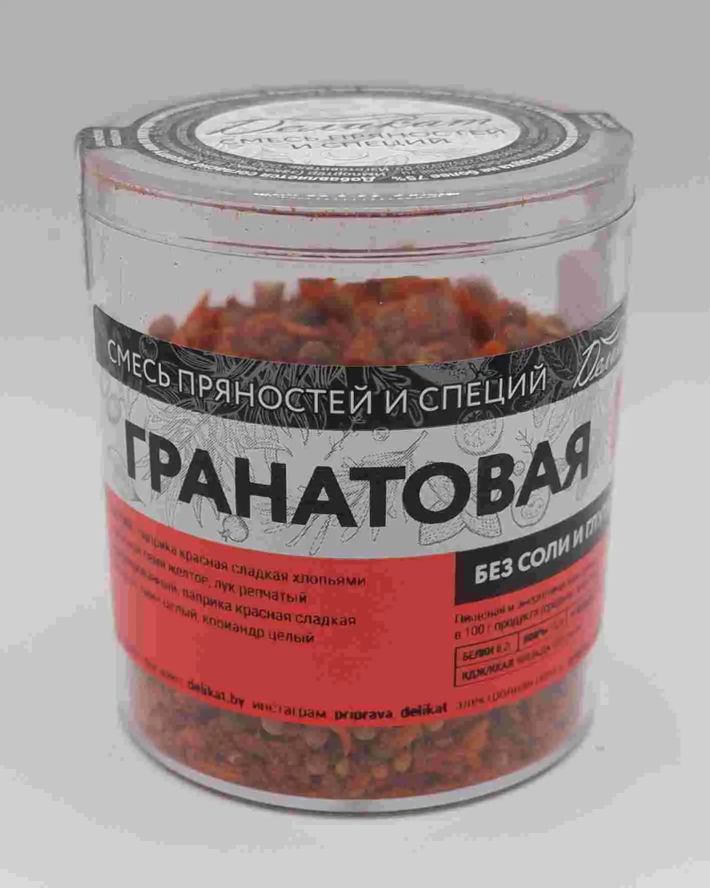 паприка красная сладкая хлопьями, горчичное семя желтое, лук репчатый гранулированный, паприка красная сладкая молотая, тмин целый, кориандр целый.