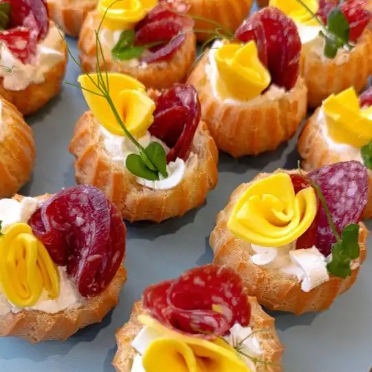 — С плавленым сыром и салями — С грушей и мёдом — С печеночным паштетом и хрустящим луком Заказ от 6 шт.