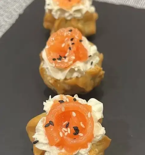 Профитроли наполнены творожным сыром, который в сочетании с креветками/форелью, придает изысканность и неповторимость этой закуски. Минимальный заказ от 10 шт