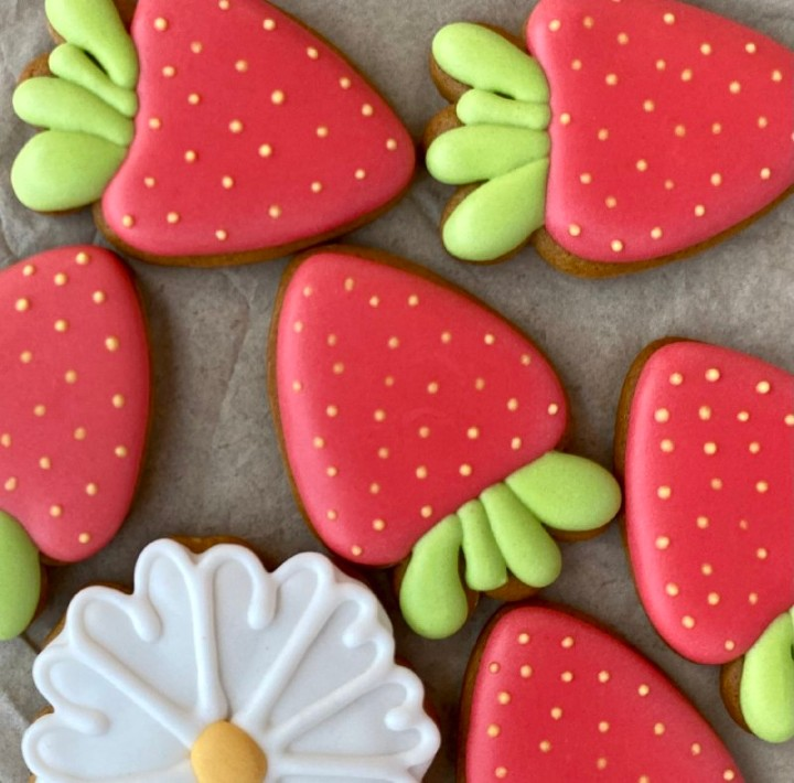 Дизайн можно выбрать представленный на фото или дизайн клубники можно дополнить самостоятельно под заказ. Необходимые корректировки уточнять производителю при заказе. Тесто: мёд, корица молотая, имбирь молотый, мука пшеничная, яйцо куриное, маргарин, сахар, сода пищевая, соль Глазурь: сахарная пудра, белок куриного яйца