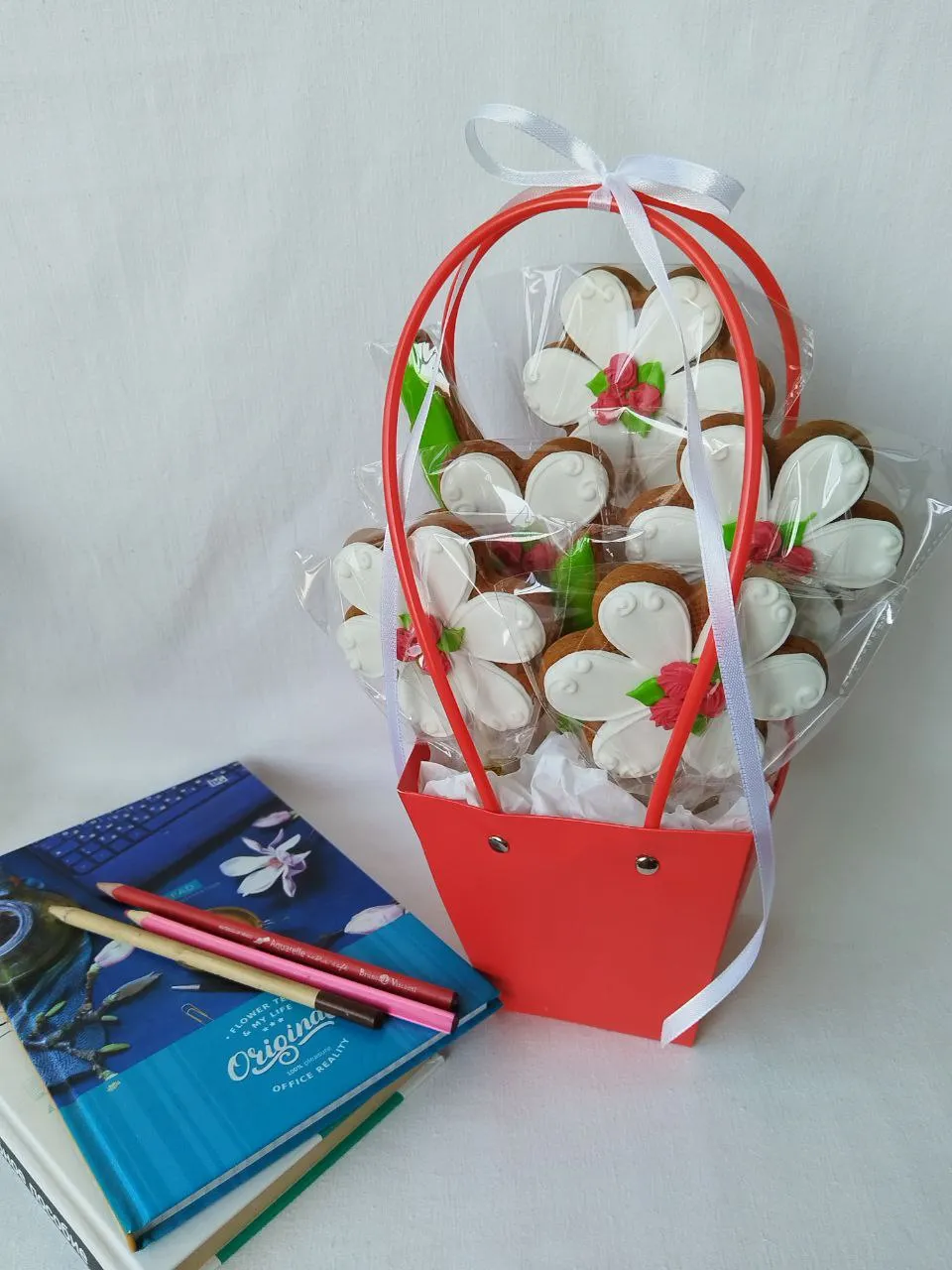 Набор 3 - 320 г Состав пряника: мед, сахар, разрыхлитель, имбирь, корица, ванилин, сливочное масло, яйцо, мука пшеничная Состав глазури: альбумин пастеризованный (сухой белок), сахарная пудра, лимонный сок, пищевой краситель, вода Пряники можно приобрести поштучно. Количество пряников в наборе можно согласовать