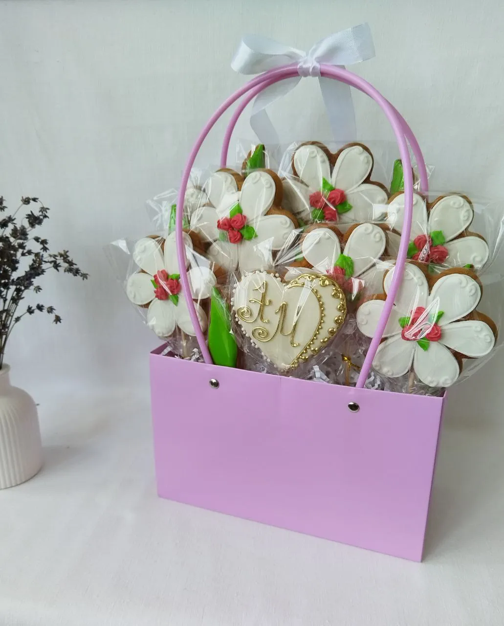 Набор 4 - вес 400 г Состав пряника: мед, сахар, разрыхлитель, имбирь, корица, ванилин, сливочное масло, яйцо, мука пшеничная Состав глазури: альбумин пастеризованный (сухой белок), сахарная пудра, лимонный сок, пищевой краситель, вода Пряники можно приобрести поштучно. Количество пряников в наборе можно согласовать