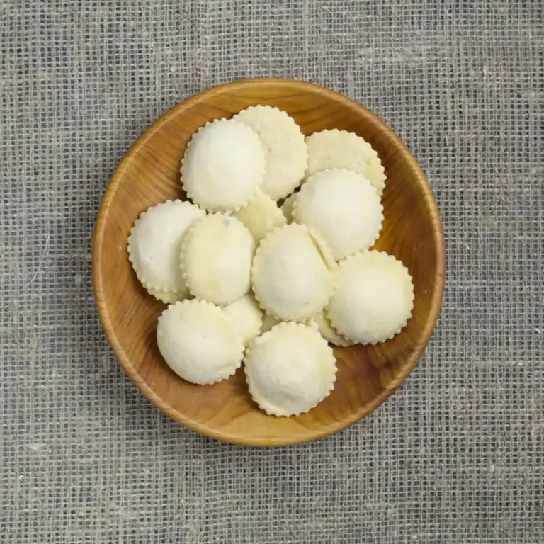 Описание: тонкие и деликатные кармашки равиоли фаршируются нежной смесью из свежего шпината и кремовой рикотты. Сыр рикотта придает начинке легкую сливочную текстуру и мягкость, а шпинат добавляет свежий, слегка травянистый вкус. Это гармоничное и сбалансированное блюдо идеально подойдет для любителей легкой, но сытной итальянской кухни. Состав: сыр рикотта, шпинат свежий бланшированный, сыр твёрдый, мускатный орех, соль. Тесто: мука tipo 00 (Италия), яйца куриные, масло оливковое, соль. Вес: 350 г Характеристики: продукт продается в замороженном виде, требует дополнительного приготовления перед употреблением. Воспользуйтесь нашей рекомендацией по способу приготовления. Способ приготовления: в кипящую подсоленную воду добавить немного оливкового масла (примерно 1 ст л), положить равиоли, перемешать. Варить 2 минуты после всплытия. Рекомендация: подавать, сбрызнув оливковым масло или с соусом песто.