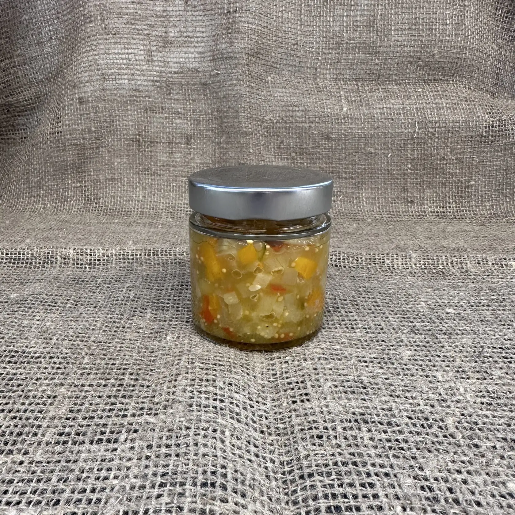 Описание: пикантная добавка к мясу, птице. Отлично подойдет к бургерам. Состав: огурцы свежие, перец болгарский, перец острый, яблочный уксус, соль, горчица зерна. Вес: 200 г Способ приготовления: блюдо полностью готово к употреблению.