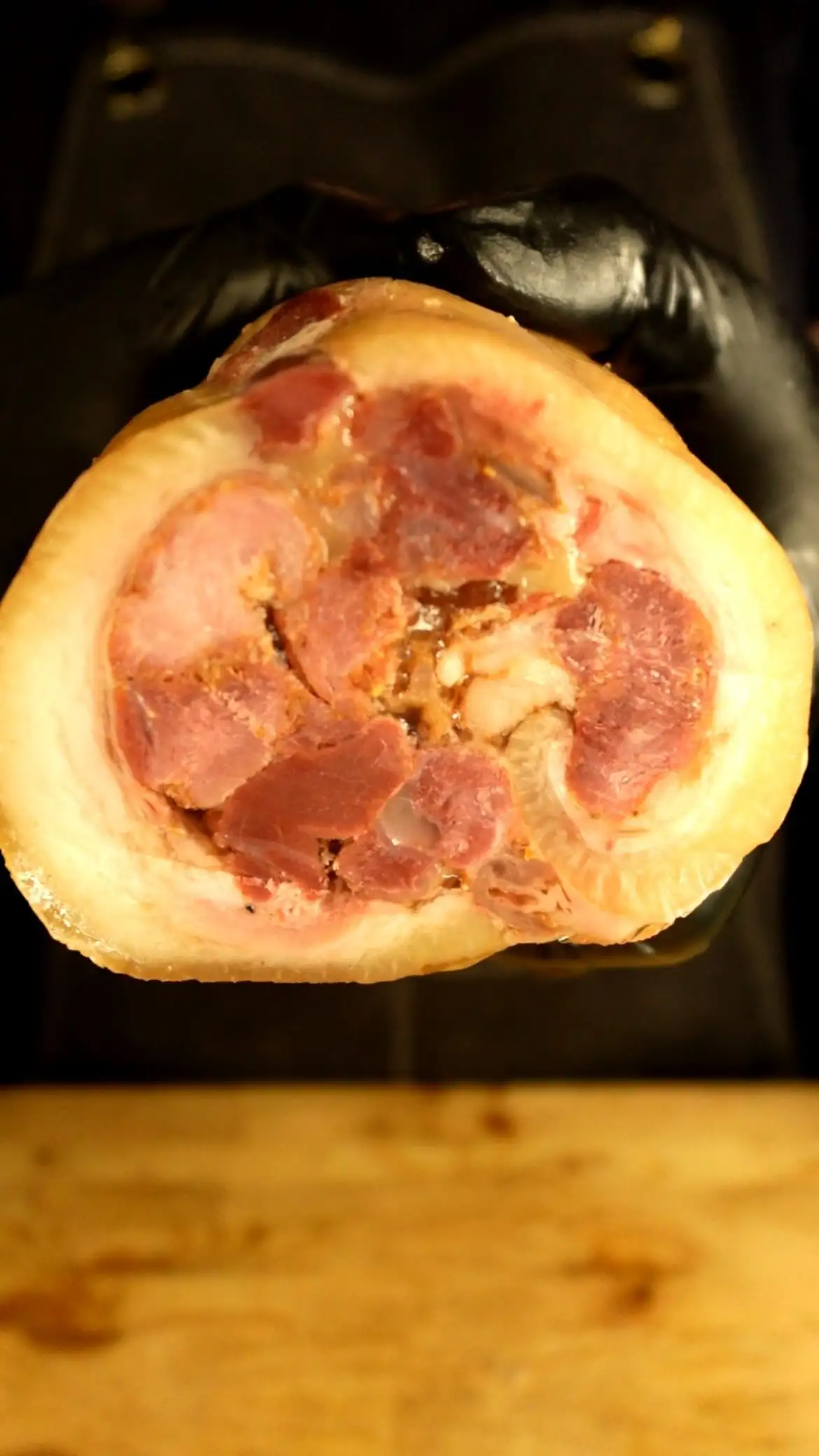 Рулет из рульки готовится в настоящей печи на дровах.