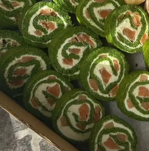 Бисквит из шпината, творожный сыр, форель 400 г