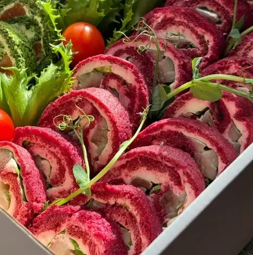Бисквит из свеклы, творожный сыр, сельдь 400 г