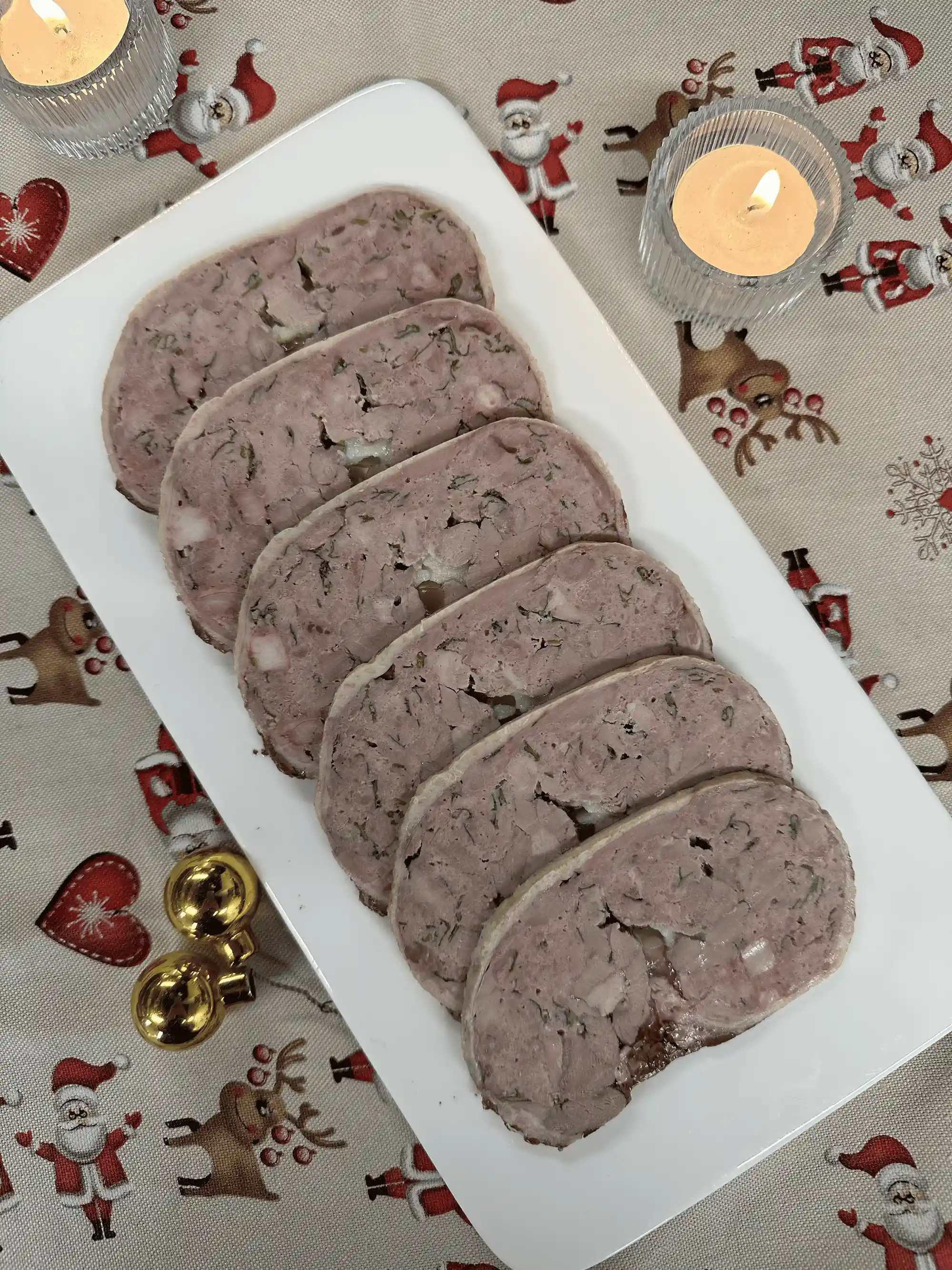 Описание: утка, рубленая постная свинина, рубленая постная говядина, ветчина, чернослив, кедровый орех. Вес готового рулета примерно 1,5 кг. Можно заказать половину. Состав: утка, рубленая постная свинина, рубленая постная говядина, ветчина, чернослив, кедровый орех.