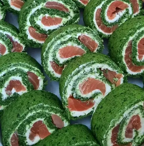 Состав: шпинат,форель, творожный сыр (крем-чиз)