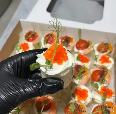 Тортилья, творожный сыр, огурец, форель, икра (имитация), микрозелень
