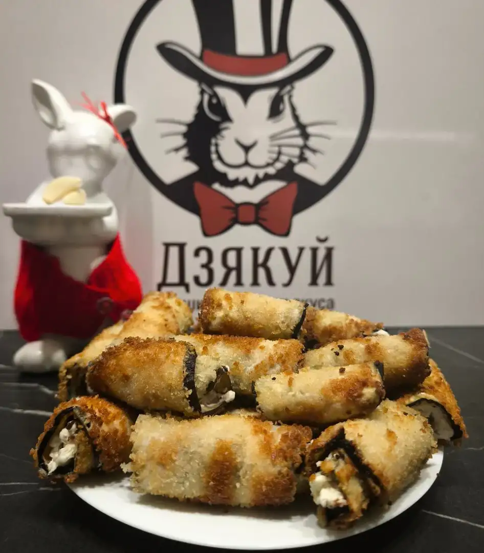 Рулетики из баклажанов с творожным сыром и грецким орехом.