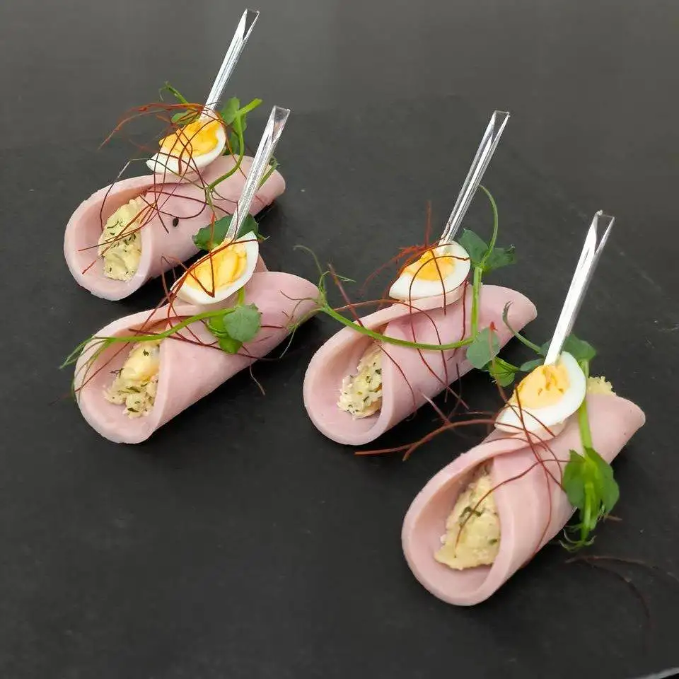 На выбор: — ветчина, сыр, майонез, чеснок, черри — ветчина, сыр, майонез, чеснок, перепелиное яйцо — ветчина, сыр твороженный, огурец маринованный, перец болгарский, салат, корнишоны