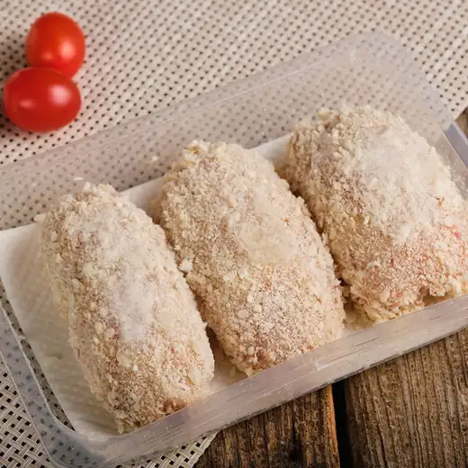Куриное филе, сыр, Ветчина, яйца,специи, соль, мука, панировочные сухари.