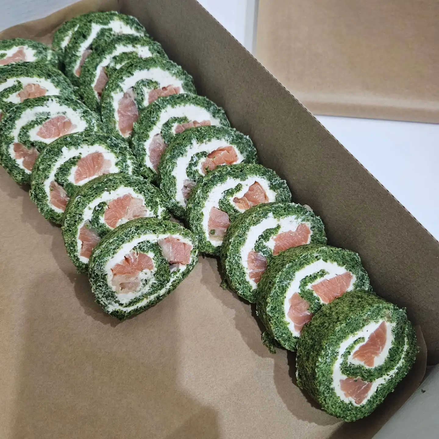 Ассортимент: — Шпинатный рулет с форелью, 600 г — Руляда с черносливом, 500 г — Сырный рулет с фаршем, 800 г