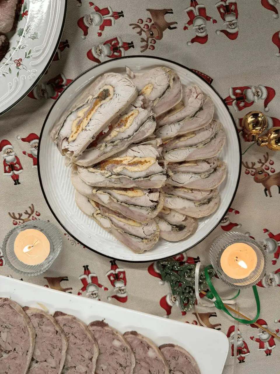 Описание: курица, омлет, морковь, укроп. Состав: попробуйте идеальное блюдо для праздничного стола и изысканного ужина — руляда из курицы! Это гармония нежнейшего куриного филе, слоёного с мягким и воздушным омлетом, сочной морковью и свежим укропом.