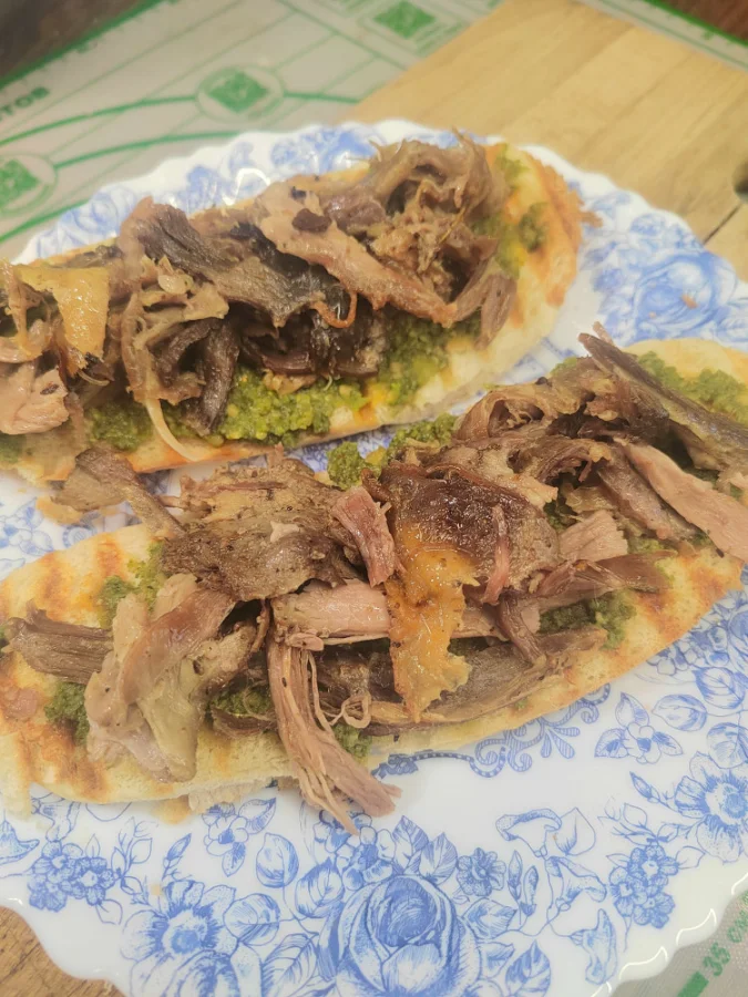 Полностью готова к употреблению, только разогреть. Можно использовать, как горячее с любыми гарнирами, как наполнение для сэндвича, питты или шаурмы.