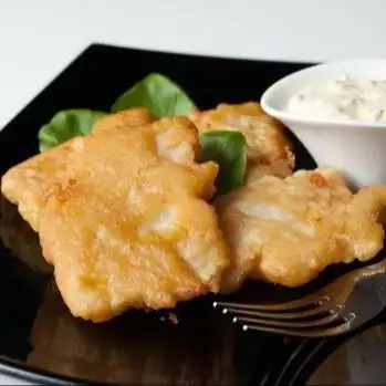 Рыба в кляре (филе минтая/хека, яйца куриные, мука пшеничная, соль, перец, приправа для рыбы). Только в готовом виде!
