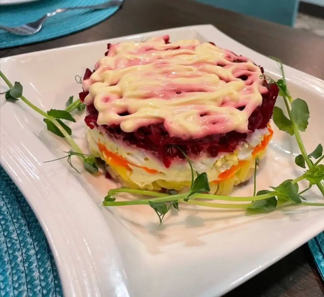 Филе сельди, картофель, морковь, яйцо, свекла, майонез