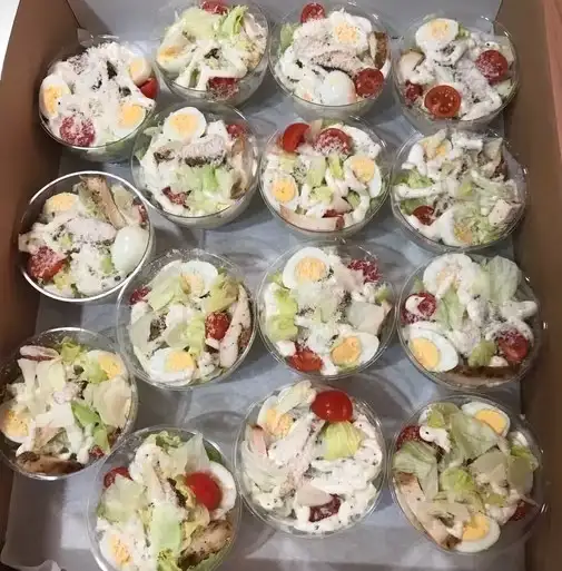 На выбор: — Цезарь в стаканчиках, 120 гр — 8 BYN — Цезарь в съедобных тарелочках, 120 гр — 10,5 BYN