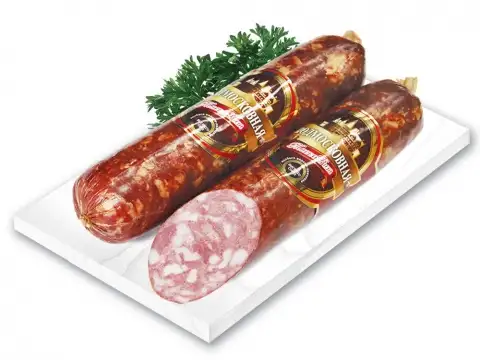 Срок годности: 40 суток Состав: свинина, шпик, соль йодированная, пряности. Пищевая ценность на 100 граммов продукта (среднее значение): белки — 14 г, жиры — 33 г. Энергетическая ценность — 353 ккал/1479 кДж.