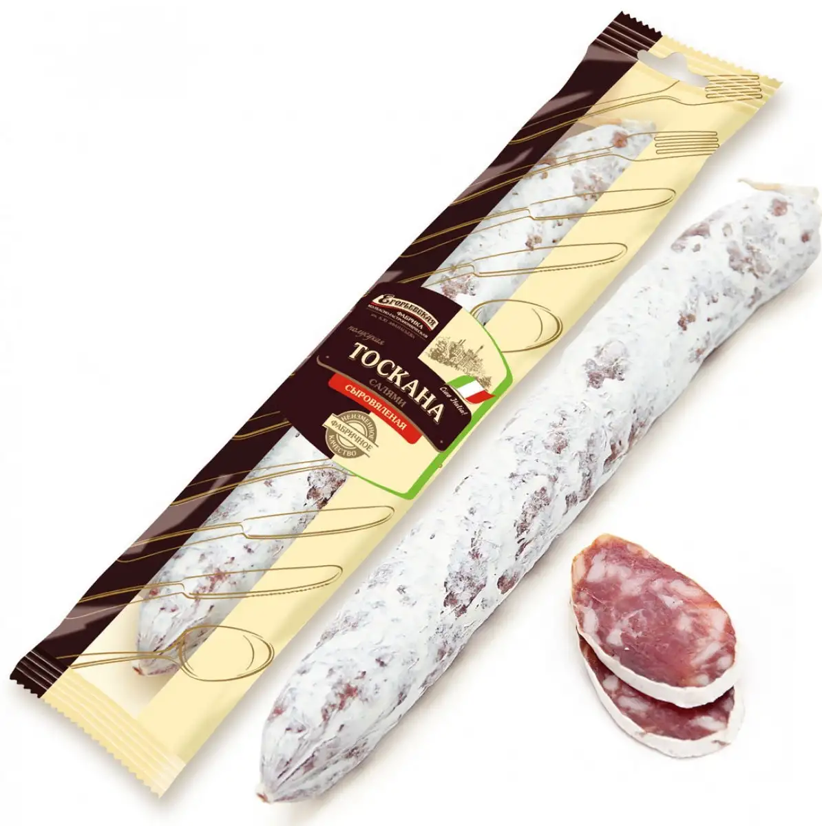 Состав: свинина, грудинка свиная, нитритно-посолочная смесь, декстроза, клетчатка, стартовая культура, специи, экстракты специй.