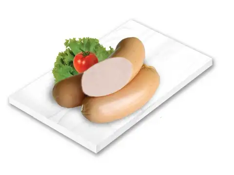 Срок годности: 45 суток Состав: свинина, вода питьевая, свинина механической обвалки, дообвалки, шкурка свиная, сыворотка молочная сухая, меланж яичный, соль йодированная, экстракты черного перца, мускатного ореха. Пищевая ценность на 100 граммов продукта (среднее значение): белки — 8,8 г; жиры — 22,4 г; углеводы — 0,7 г. Энергетическая ценность — 220 ккал / 923 кДж.