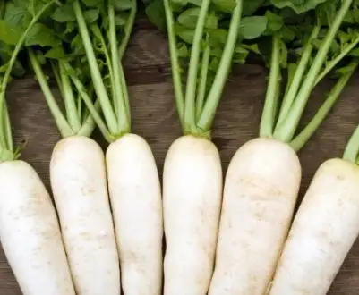 Производитель семян: Италия Семена на 100% органические: не обработаны фунгицидами, не подвергались генной модификации, культивируются без применения синтетических удобрений и пестицидов. Всхожесть: 98% Высокая урожайность. Вариации названия: дайкон, редис, белый дайкон, китайский редис. Витамины: А, В1, В2, В5, В6, В9, С, РР. Минералы: железо, кальций, калий, йод, фосфор, цинк и другие. Клетчатка. Аминокислоты. Энзимы. Пектин. Лизоцим. Изородановая кислота. Фитонциды и антиоксиданты. Как видите, дайкон имеет необычайно богатый витаминами и минералами состав, но при этом этот корнеплод имеет очень низкую калорийность — 21 ккал на 100 г. Дайкон белый — однолетнее растение, так как успевает за один сезон образовать корнеплод и дать семена для дальнейшего размножения.