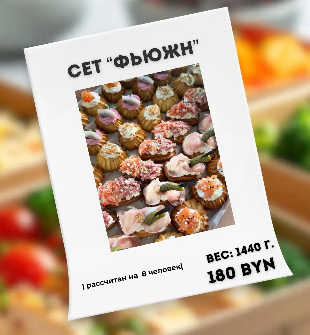 Профитроли со свекольным муссом и сельдью ШУ с куриным фрикасе Профитроли с муссом из креветок Профитроли с тартаром из форели Эклер с салями Эклер с Пармой