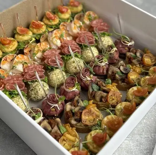 Кростини с грибами Сырный бургер Сырный Болл с салями Кростини с креветками Мясной мешочек