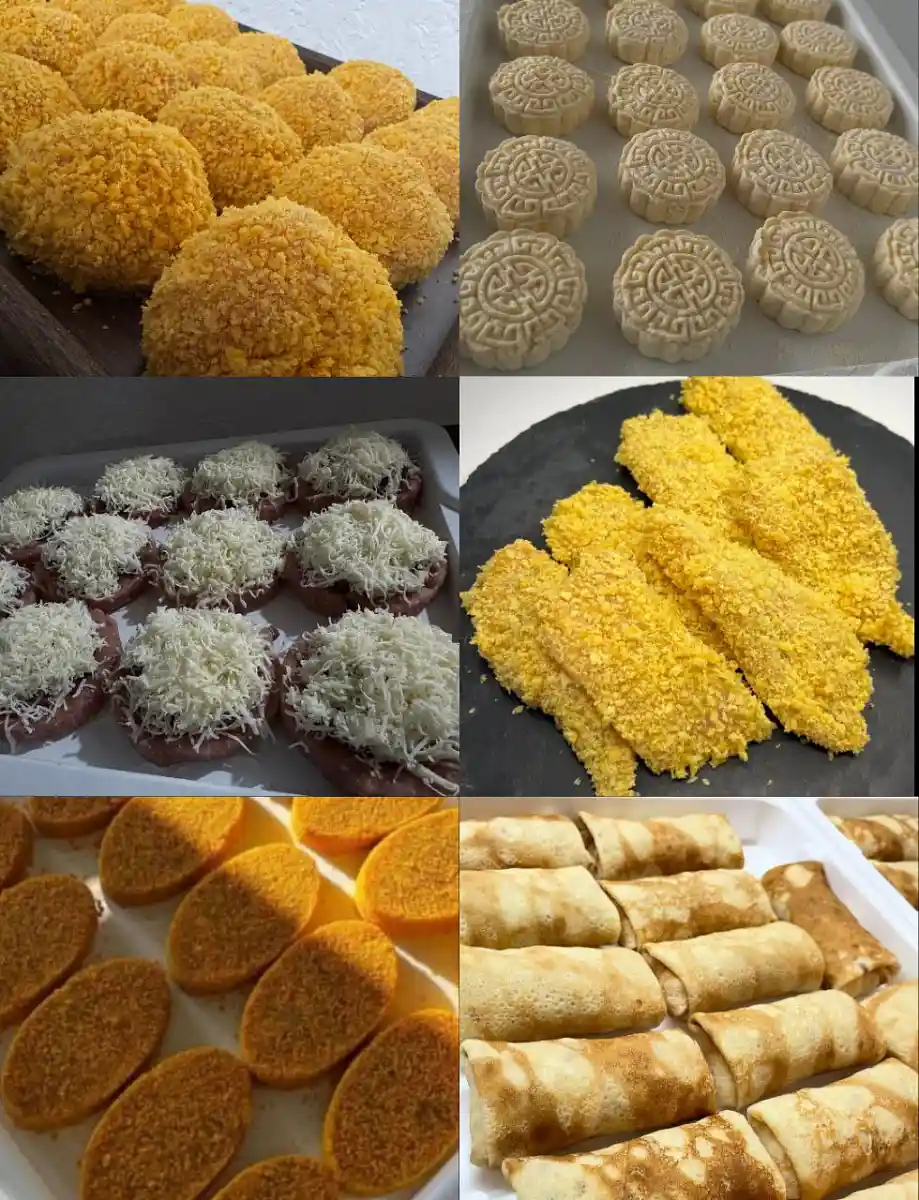 Митболы с творожным сыром 1 кг Сырники классические 1 кг Стожки с грибами под сырной шапочкой 1 кг Наггетсы 1 кг Котлеты из куриной грудки 1 кг Блинчики с ветчиной и сыром 1 кг Вес — 6 кг