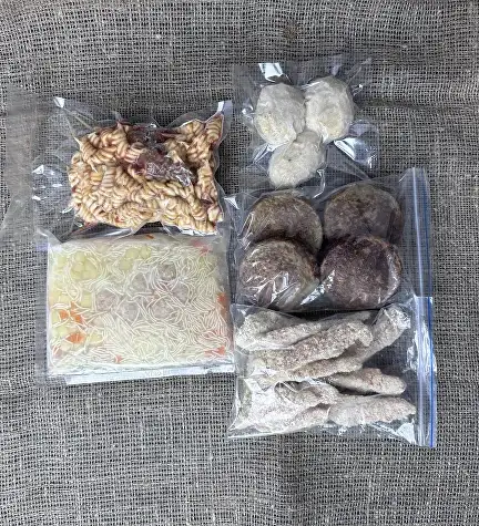 Состав: Колдуны (драники с мясом) 4 шт; Наггетсы куриные; Куриные детские котлетки 3 шт/150 г; Паста с фрикадельками в соусе; Суп куриный с фрикадельками 350 г. Способ приготовления: Колдуны (драники с мясом) — блюдо полностью готово к употреблению. Разогреть удобным для вас способом; Наггетсы куриные — блюдо полностью готово к употреблению. Разогреть удобным для вас способом; Куриные детские котлетки — блюдо полностью готово к употреблению. Разогреть удобным для вас способом; Паста с фрикадельками в соусе — блюдо полностью готово к употреблению. Разогреть удобным для вас способом; Суп куриный с фрикадельками — продукт полностью готов к употреблению. Разогреть удобным для вас способом.