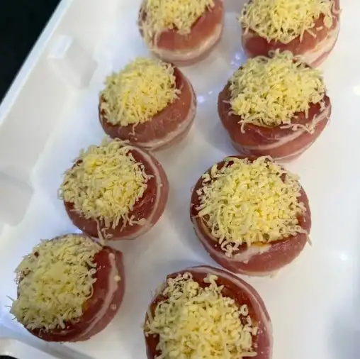 Шампиньоны, бекон, лук, сыр, сметана