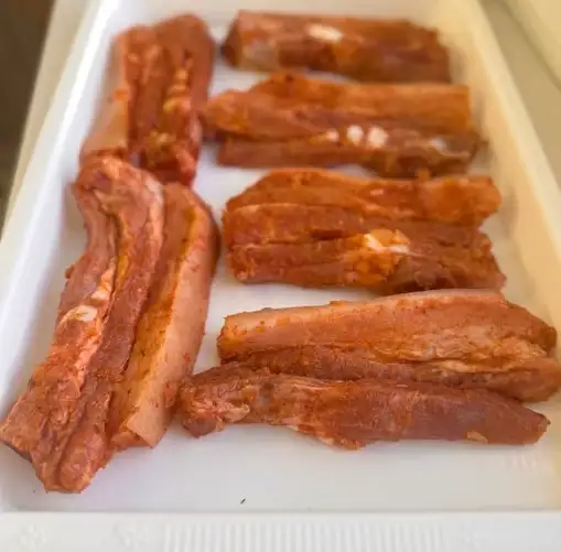 Грудинка свиная, лук репчатый, соль, приправа для шашлыка , паприка, уксус 9%