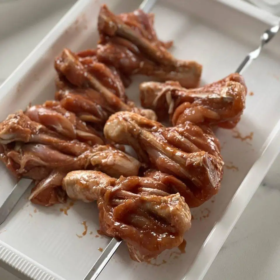 Шашлык из куриной голени (голень кур, соевый соус, соль, кетчуп, чеснок сушёный, мёд, приправа для гриля).