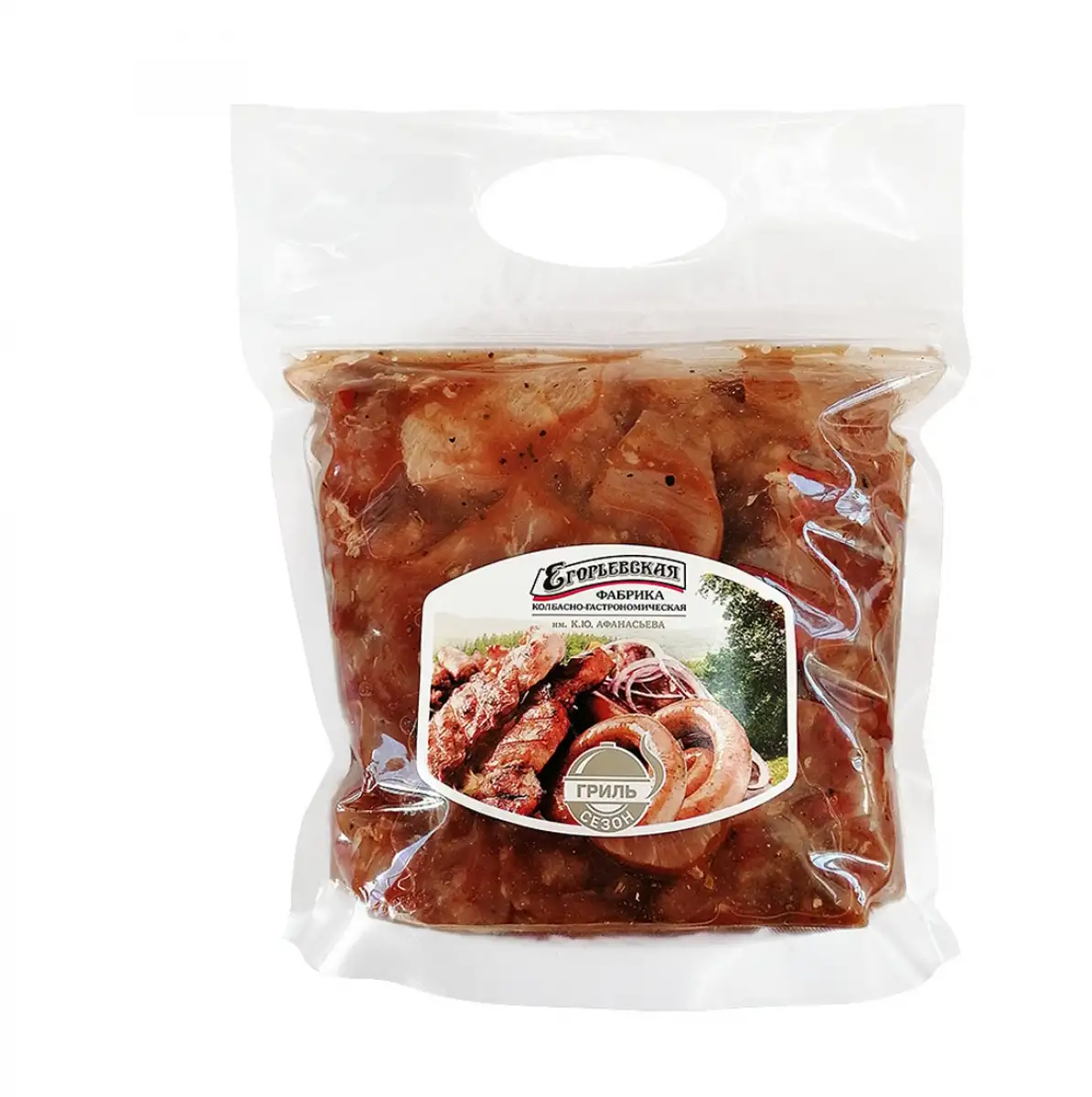 Состав: свинина, маринад, пряности (кориандр, перец черный, паприка, размарин, петрушка, можжевеловые ягоды, экстракты пряностей (перца, тмина, мускатного ореха) натуральные овощи (лук репчатый, чеснок, томаты), декстроза.