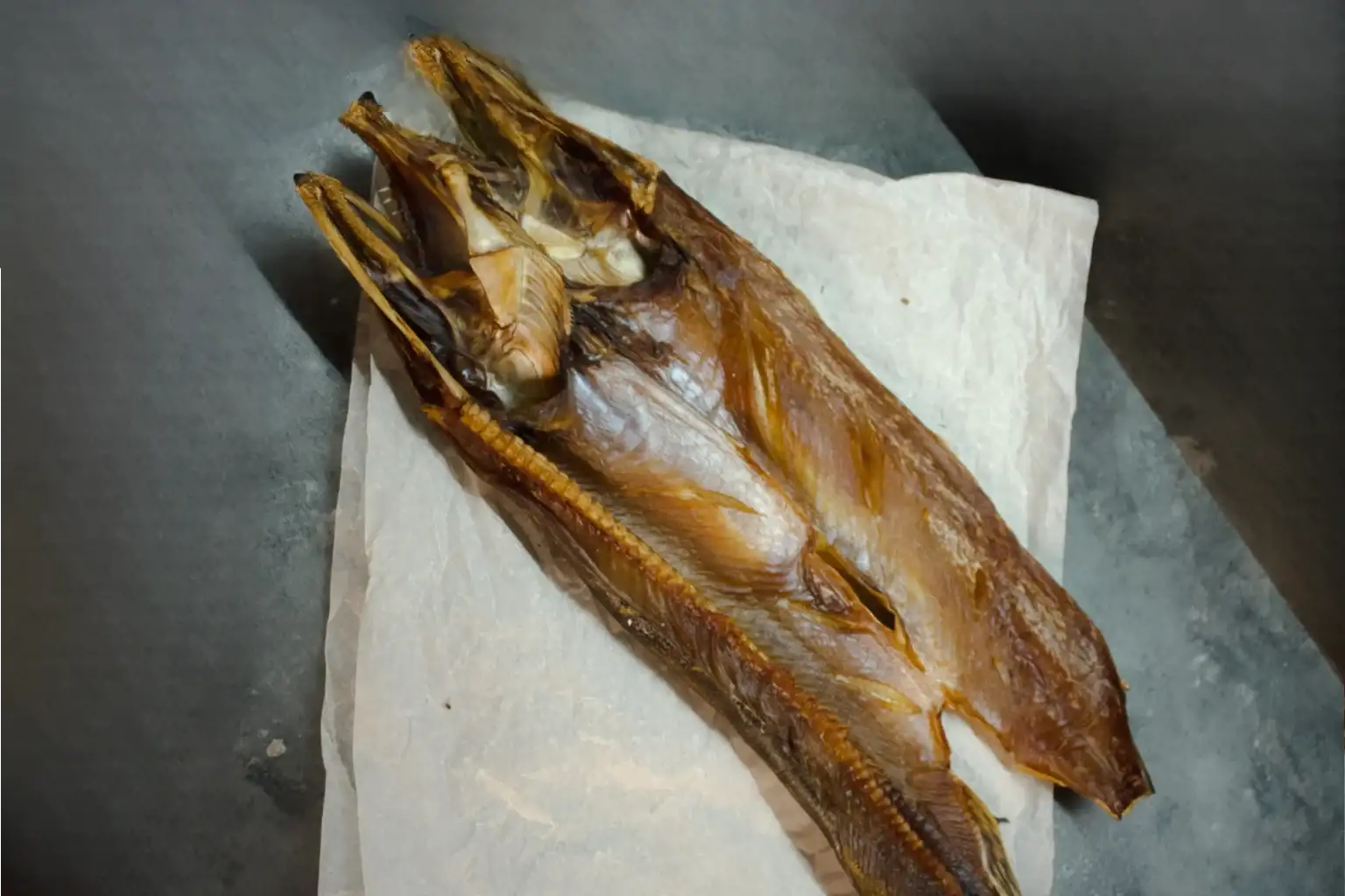 Рыба холодного копчения Вид разделки: с головой, потрошеная Производитель: РБ Пищевая ценность на 100 г продукта: белки – 18.4 г, жиры – 1.1 г, углеводы – 0 г Энергетическая ценность на 100 г продукт: 84 ккал