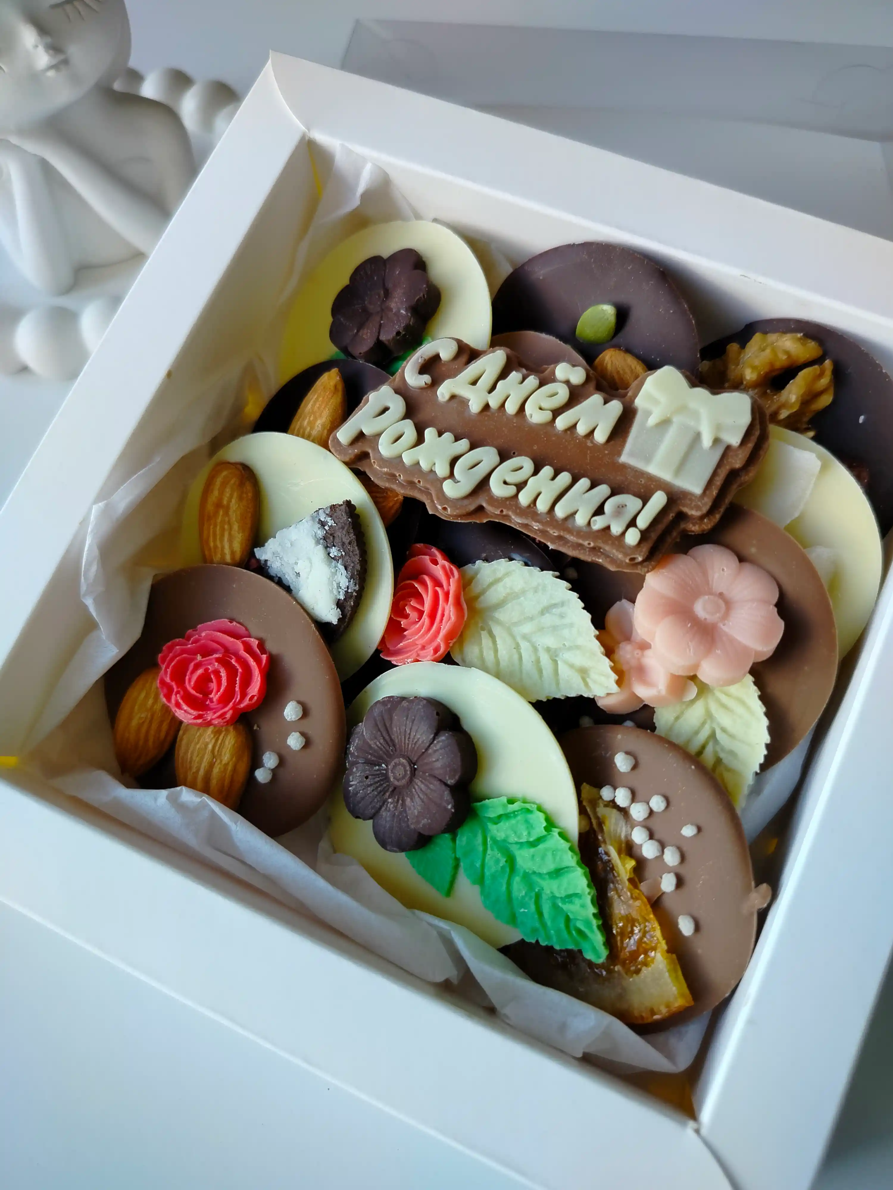 Шоколадный набор "День рождения" Выполнен из белого, молочного и темного шоколада. Срок хранения до 3 месяцев Срок изготовления 3-4 дня, при отправке Европочтой 4-5 дней + время в пути