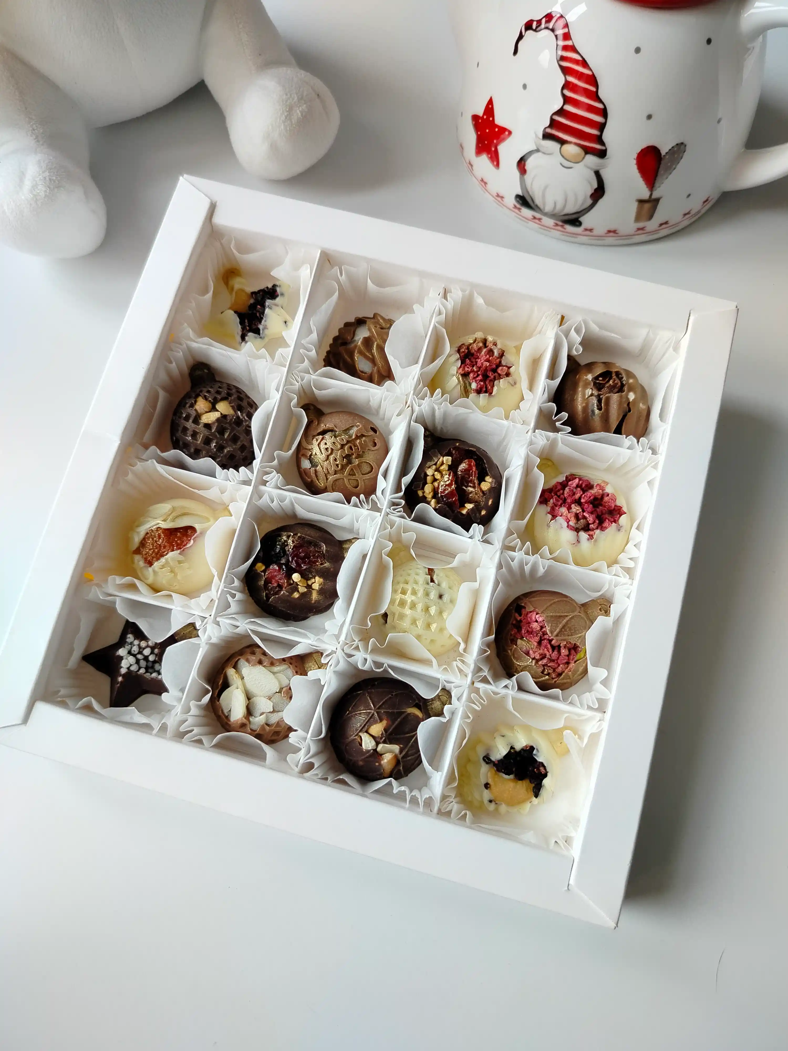 Шоколадный набор " Ёлочные игрушки" Прекрасный подарок вашим родным и близким. Изготовлен из белого, молочного и темного шоколада с добавлением орехов, вяленых и сублимированных ягод. Срок изготовления заказа 3-4 дня, при отправке почтой 4-5 дней + время в пути . Срок годности 3 месяца