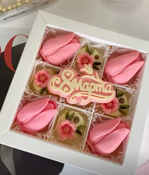 Размер коробки 15.5×15.5 Срок хранения шоколадных изделий до двух месяцев, вдали от солнечных лучей и отопительных приборов!